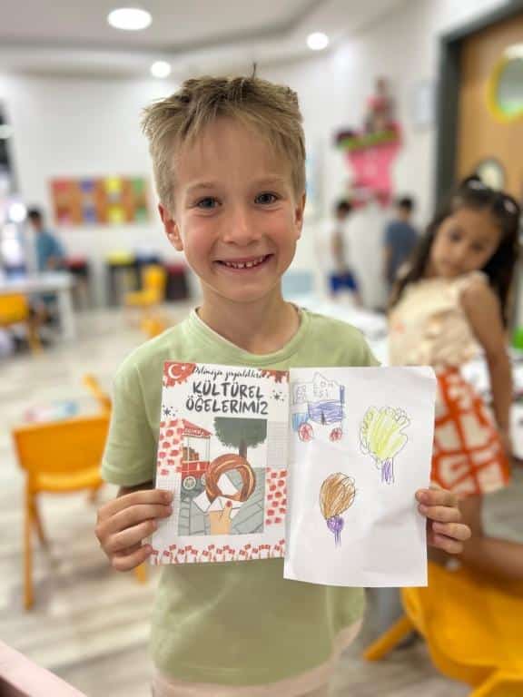 Kültürel Ögeleri Tanıma bölümünde yöresel motifler, geleneksel kıyafetler, yemekler ve müzikler hakkında konuşuldu; çocuklarımızın kültürel farkındalıkları desteklendi.